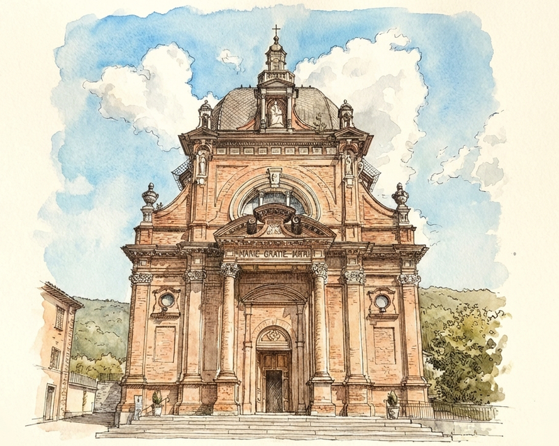 The Santuario di Valsorda, located in the silent green valley above Garessio, is an architectural marvel defined by its striking centralized octagonal plan and a towering dome that rivals some of the most famous religious structures in Piedmont. Built primarily in the 20th century on the site of a 17th-century chapel, the sanctuary is dedicated to the Beata Vergine delle Grazie and serves as a monumental tribute to faith and alpine perseverance. Its interior is characterized by a surprising sense of verticality and light, featuring elegant marble finishes and intricate decorations that create a solemn, airy atmosphere. The surrounding landscape of dense woods and rugged peaks provides a stark, natural contrast to the building’s formal geometric precision, making it a key spiritual landmark for pilgrims and hikers trekking through the Maritime Alps.